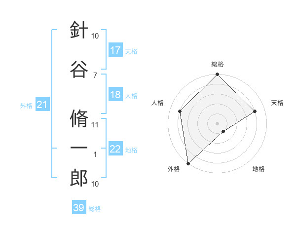 針谷 脩一郎さんの総格は39画の5点!