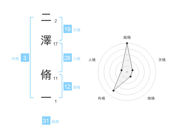 二澤 脩一さんの天格は19画の1点!