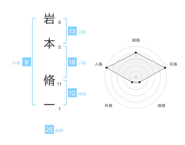 岩本 脩一さんの総格は25画の4点!