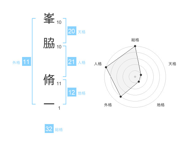 峯脇 脩一さんの総格は32画の5点!