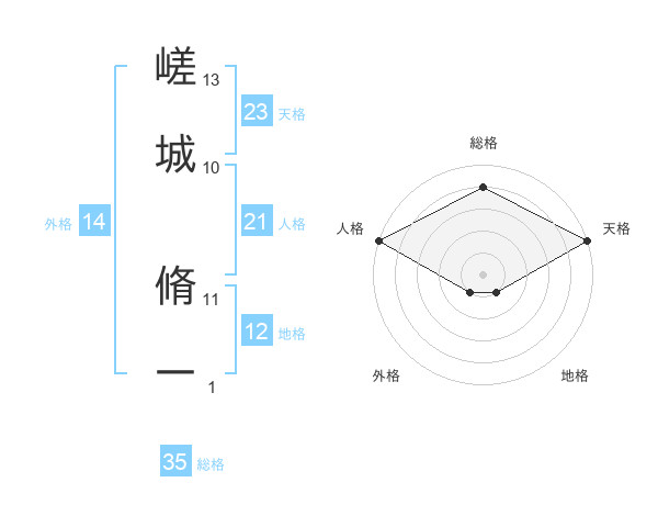 嵯城 脩一さんを姓名の画数から五運を鑑定