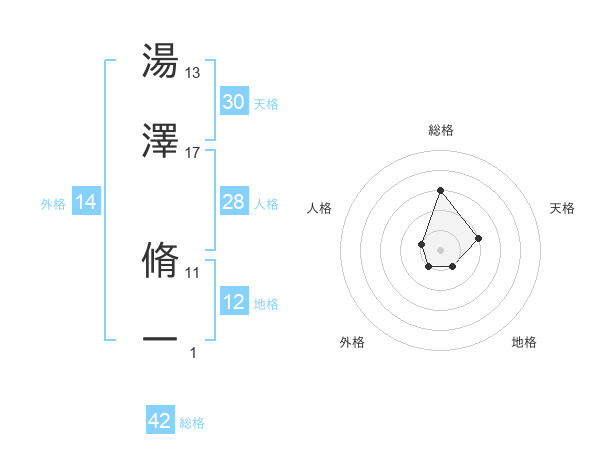 湯澤 脩一さんを姓名の画数から五運を鑑定