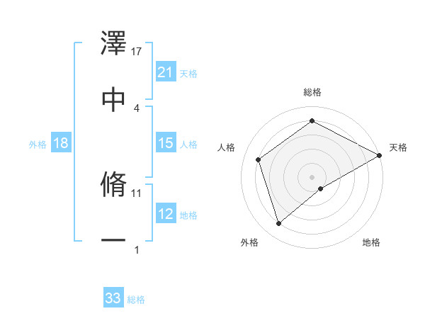 澤中 脩一さんの天格は21画の5点!