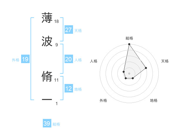 薄波 脩一さんの総格は39画の5点!