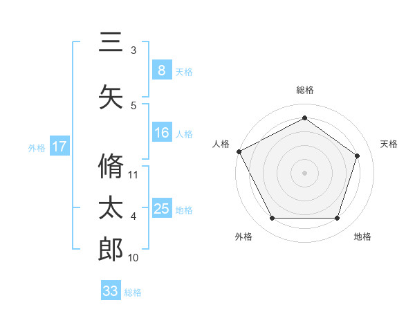 三矢 脩太郎さんの天格は8画の4点!