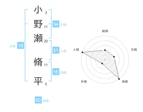 小野瀬 脩平さんを姓名の画数から五運を鑑定
