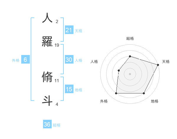 人羅 脩斗さんの天格は21画の5点!