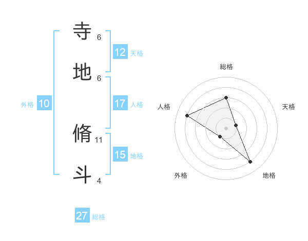 寺地 脩斗さんの総格は27画の3点!