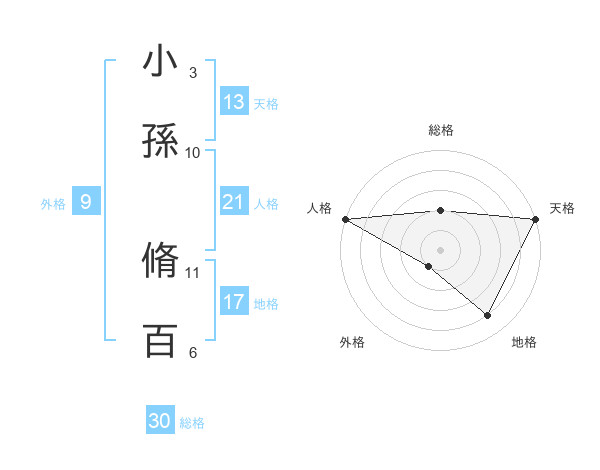 小孫 脩百さんの総格は30画の2点!
