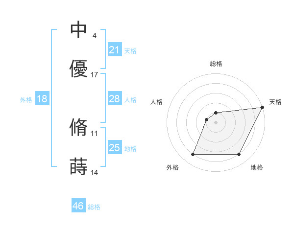 中優 脩蒔さんの地格は25画の4点!