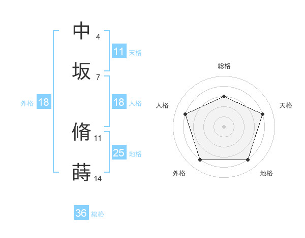 中坂 脩蒔さんを姓名の画数から五運を鑑定