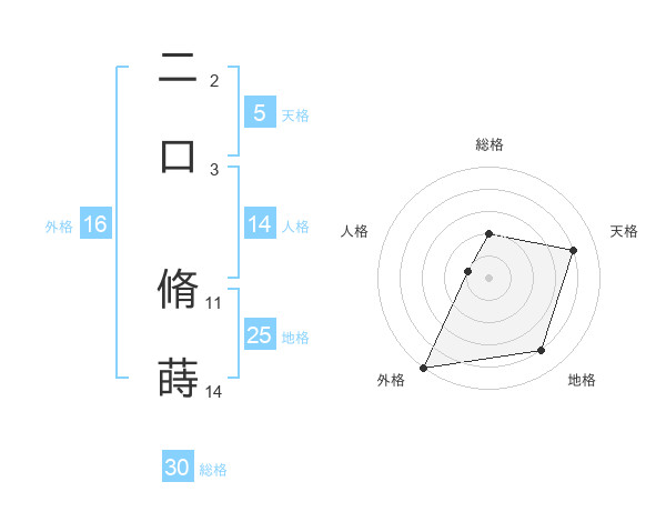二口 脩蒔さんを姓名の画数から五運を鑑定