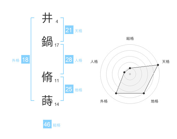 井鍋 脩蒔さんを姓名の画数から五運を鑑定