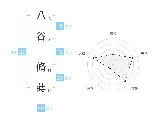 八谷 脩蒔さんの地格は25画の4点!