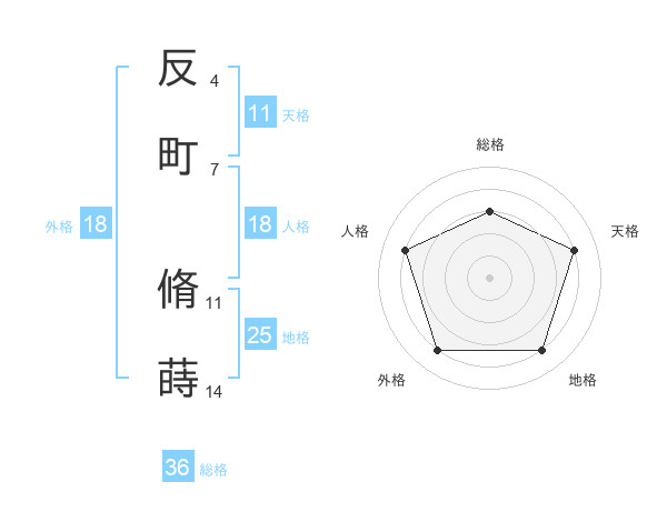 反町 脩蒔さんの総格は36画の3点!