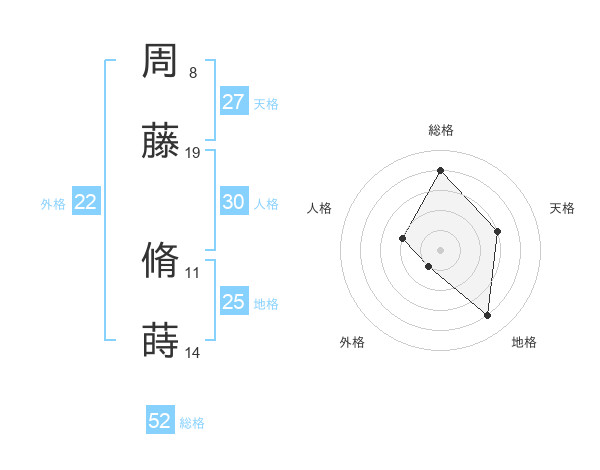 周藤 脩蒔さんの総格は52画の4点!