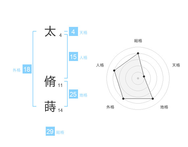 太 脩蒔さんを姓名の画数から五運を鑑定