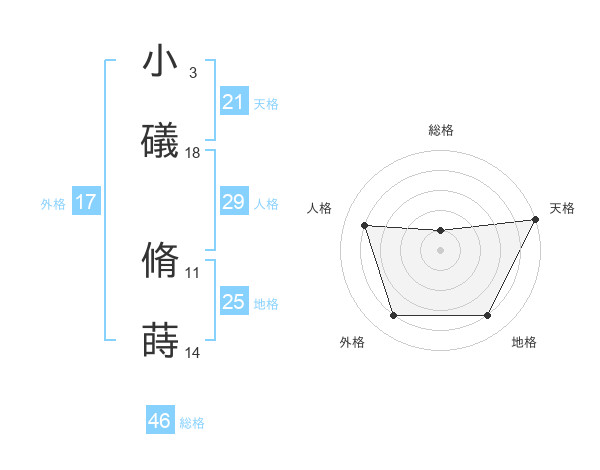 小礒 脩蒔さんの外格は17画の4点!