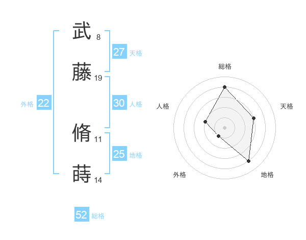 武藤 脩蒔さんの総格は52画の4点!