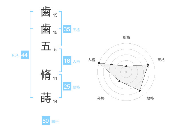 歯歯五 脩蒔さんの名前の鑑定結果は!