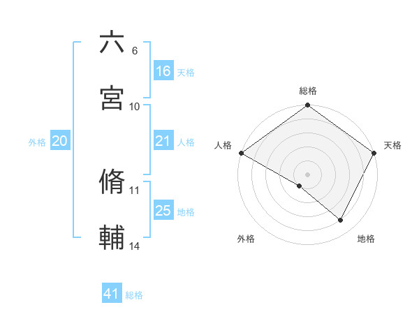六宮 脩輔さんの総格は41画の5点!