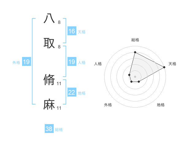 八取 脩麻さんの総格は38画の4点!