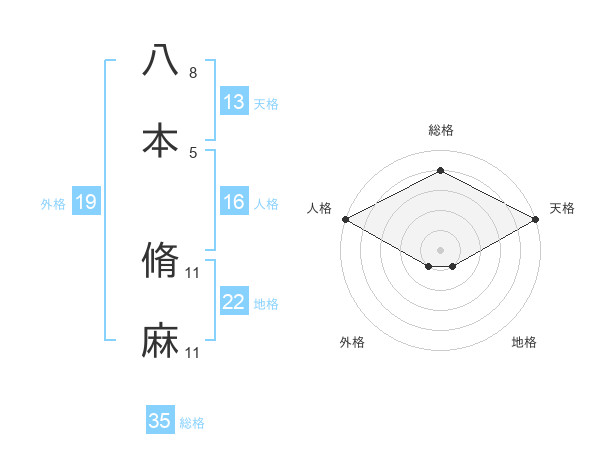 八本 脩麻さんの総格は35画の4点!