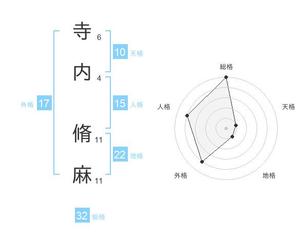 寺内 脩麻さんの総格は32画の5点!