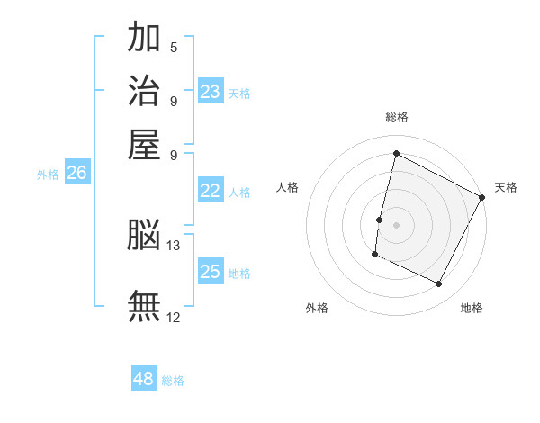 加治屋 脳無さんを姓名の画数から五運を鑑定