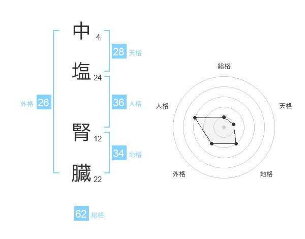 中塩 腎臓さんを姓名の画数から五運を鑑定