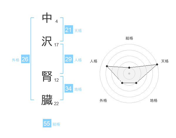 中沢 腎臓さんの総格は55画の1点!