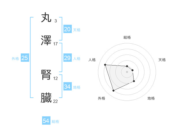 丸澤 腎臓さんを姓名の画数から五運を鑑定