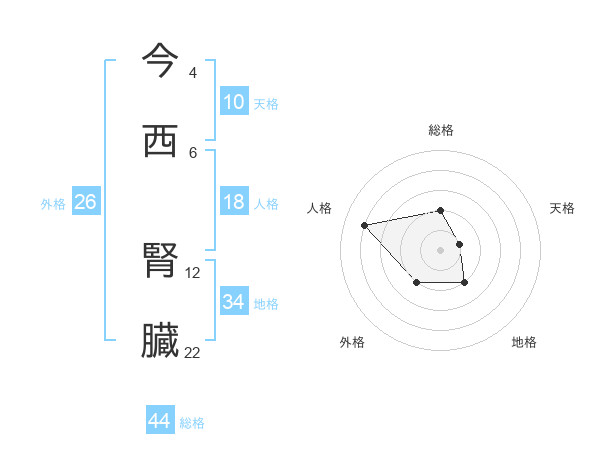 今西 腎臓さんの総格は44画の2点!