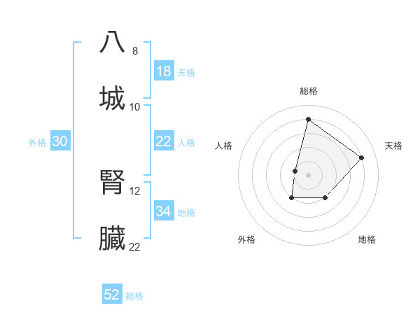 八城 腎臓さんを姓名の画数から五運を鑑定