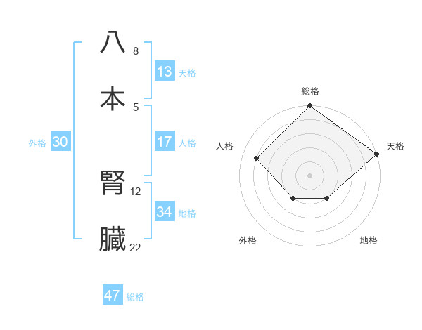 八本 腎臓さんの総格は47画の5点!