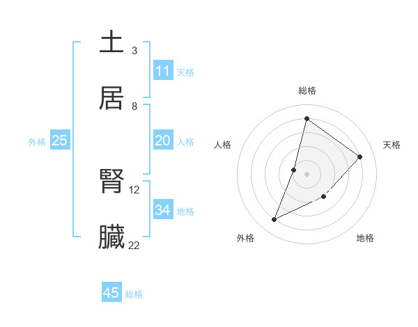 土居 腎臓さんの天格は11画の4点!