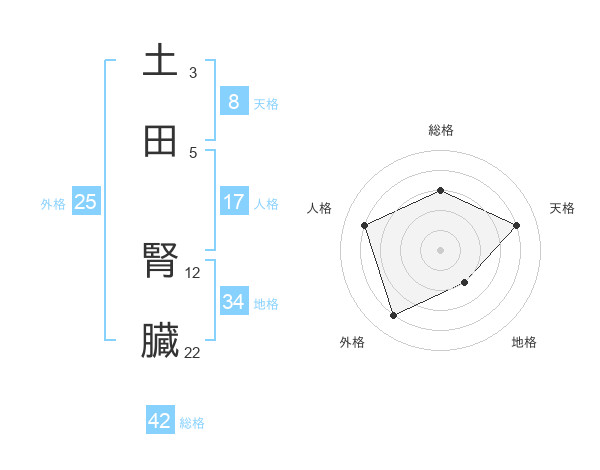 土田 腎臓さんを姓名の画数から五運を鑑定
