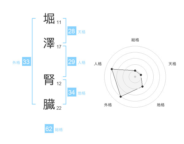 堀澤 腎臓さんを姓名の画数から五運を鑑定