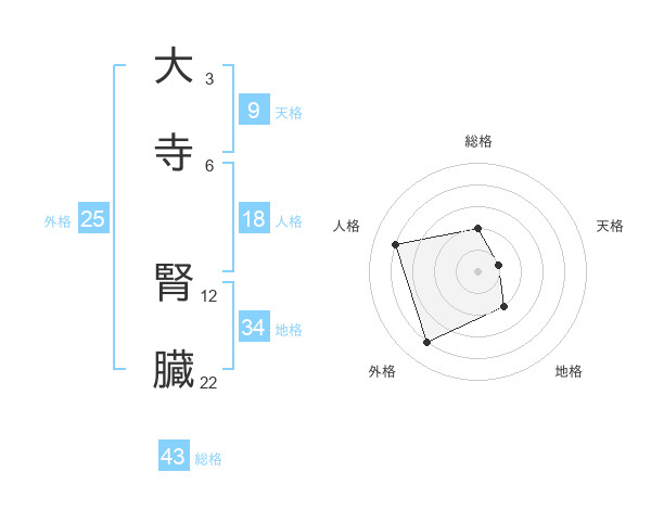 大寺 腎臓さんの総格は43画の2点!