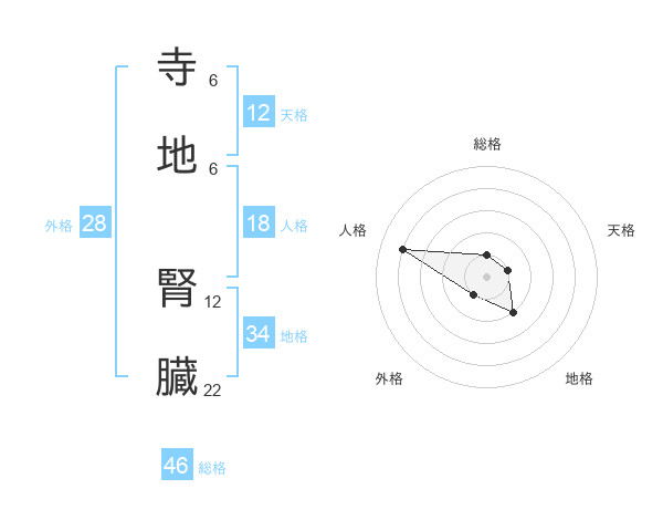 寺地 腎臓さんの総格は46画の1点!