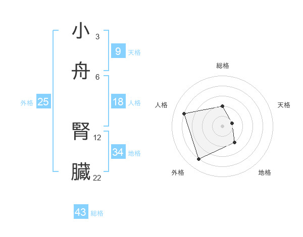 小舟 腎臓さんを姓名の画数から五運を鑑定