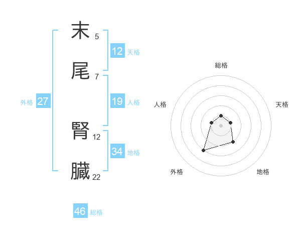 末尾 腎臓さんの総格は46画の1点!