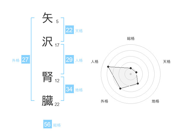 矢沢 腎臓さんを姓名の画数から五運を鑑定