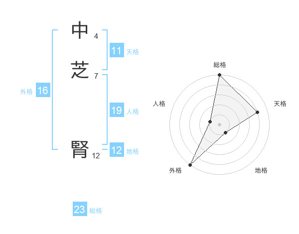 中芝 腎さんの総格は23画の5点!