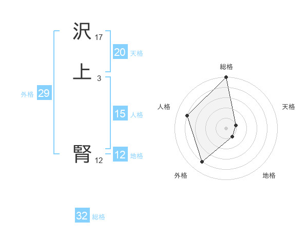 沢上 腎さんの総格は32画の5点!
