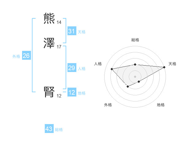 熊澤 腎さんを姓名の画数から五運を鑑定