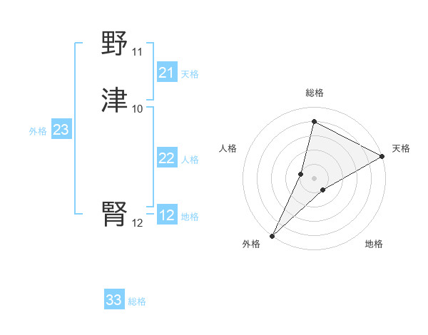 野津 腎さんの総格は33画の4点!