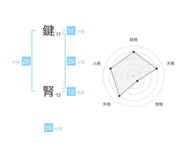 鍵 腎さんの総格は29画の4点!