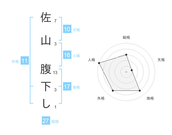 佐山 腹下しさんの人格は16画の5点!