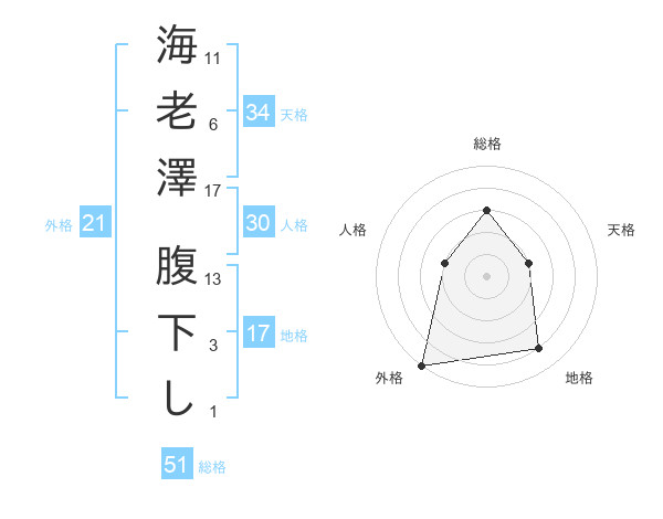 海老澤 腹下しさんの総格は51画の3点!